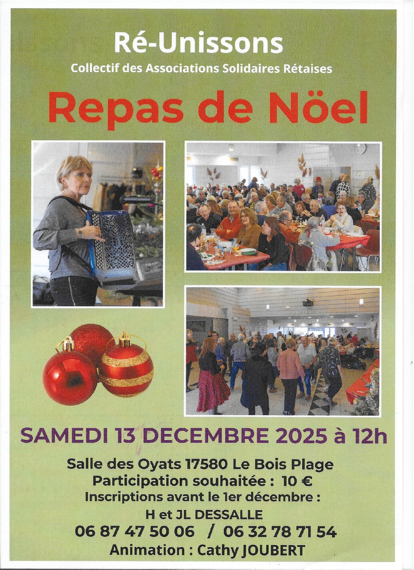 Noel solidaire ; réservation avant le 1er décembre au 06 87 47 50 06 ou 06 32 78 71 54