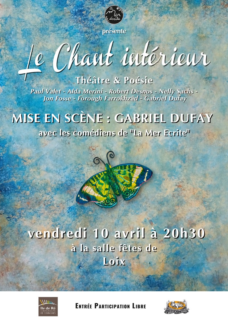 Le chant intérieur Théâtre et poésie + Ajouter à mon Agenda Google + iCal / Outlook export 00 jours 00 heures 00 minutes 00 secondes Date 10 Avr 2026 Heure 20:30 - 23:00 Lieu Salle des Fêtes 12, rue du couvent Organisateur Association Le Radeau de la Méduse Téléphone 06 64 10 70 94 Email leradeaudelameduse1@gmail.com Partagez cet événement