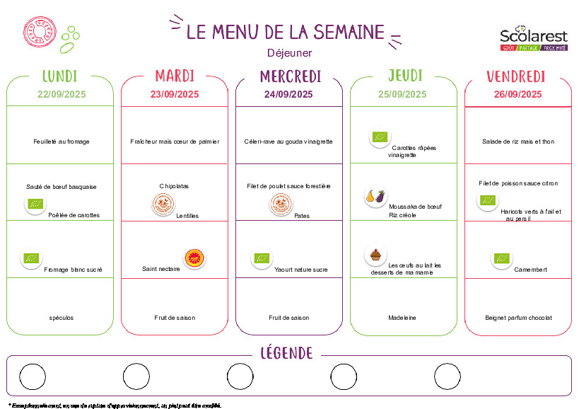 • Menus du 22 au 26 septembre 2025